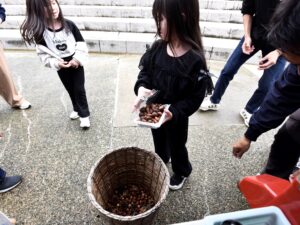 どんぐり10個持参でグッズが当たるガチャガチャにチャレンジしてもらいました。 なお、集まったどんぐりは植樹イベントで活用される予定です。